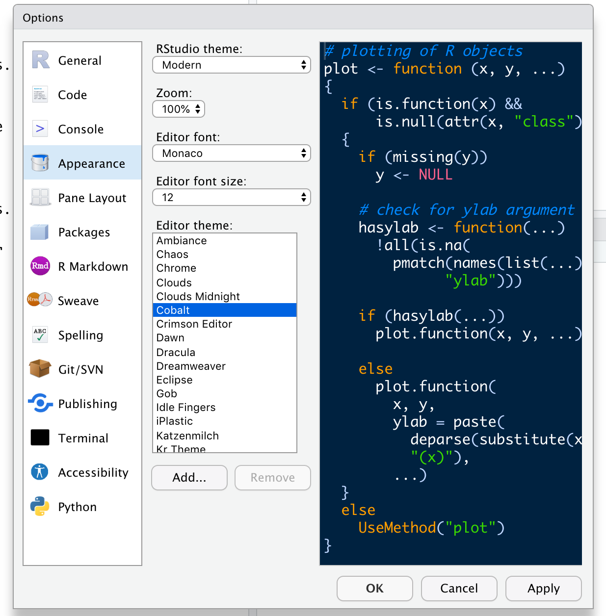 ] --- <style type="text/css"> .remark-slide-content { font-size: 35px; } </style> <style type="text/css"> .remark-slide-content { font-size: 35px; } </style> <style> p.comment { background-color: #DBDBDB; padding: 10px; border: 1px solid black; margin-left: 25px; border-radius: 5px; font-style: italic; } </style> <style type="text/css"> h1, #TOC>ul>li { color: #3f007d; font-weight: bold; } h2, #TOC>ul>ul>li { color: #006837; #font-family: "Times"; font-weight: bold; } h3, #TOC>ul>ul>li { color: #ce1256; #font-family: "Times"; font-weight: bold; } </style> ## R Programming Language - R is a software environment for statistical computing and graphics. - Language designers: **R**oss Ihaka and **R**obert Gentleman at the University of Auckland, New Zealand. <center><img src="RobertandRoss.jpg" height="350px" /></center> --- <!--You have already mastered Minitab. --> .pull-left[ ### Minitab - Menu driven software <center><img src="minitab.png" height="400px" height="300px"/></center> <!--Minitab. Commonly used in: social science, marketing, education, sociology, ... Menu-driven statistical software--> ] .pull-right[ ### R - Scripting language <center><img src="rstudiocode.png" height="400px" height="300px"/></center> ] --- .pull-left[ ### Menu driven software <center><img src="minitab.png" height="400px" height="300px"/></center> <!--Minitab. Commonly used in: social science, marketing, education, sociology, ... Menu-driven statistical software--> ] .pull-right[ ## Pros - Do not have to remember the commands. - User friendly. ## Cons - Irritating if there are too many levels of menues to move around. - Difficult to reproduce results. ] --- <!--You have already mastered Minitab. --> .pull-left[ ### Scripting language <center><img src="rstudiocode.png" height="400px" height="300px"/></center> ] .pull-right[ ## Pros - Useful for collaborative research. - Ideal for reproducible research ## Cons - The learning curve may be difficult at the start. ] --- ## Why learn R? - **Free and open-source** software package - A large online community that makes it fun to learn - Latest cutting edge technology - Easier to update analysis - Easier to reproduce analysis - Easier to collaborate with others - Easier to automate analysis --- background-image: url('iconsRRS.png') background-size: cover --- class: inverse, middle, center # Your Turn **Open RStudio by clicking on the RStudio icon** <img src="iconsRRS.png" width="75%" /> --- class: inverse, middle, center # The RStudio Panes --- background-image: url('rspanes/1rsplane.png') background-size: contain --- background-image: url('rspanes/2rsplane.png') background-size: contain --- background-image: url('rspanes/3rsplane.png') background-size: contain --- background-image: url('rspanes/4rsplane.png') background-size: contain --- background-image: url('rspanes/5rsplane.png') background-size: contain --- background-image: url('rspanes/6rsplane.png') background-size: contain --- background-image: url('rspanes/7rsplane.png') background-size: contain --- background-image: url('rspanes/8rsplane.png') background-size: contain --- background-image: url('rspanes/9rsplane.png') background-size: contain --- class: inverse, middle, center # How to customize your RStudio theme? --- class: middle, center ## Tools > Global Options > Appearance <img src="rspanes/toold.png" width="50%" />  --- background-image: url('rspanes/10rsplane.png') background-size: contain --- background-image: url('airport.jpg') background-position: right background-size: contain # R and RStudio --- .pull-left[  ] .pull-right[ > If R were **an airplane**, RStudio would be **the airport**, providing many, many supporting services that make it easier for you, the pilot, to take off and go to awesome places. Sure, you can fly an airplane without an airport, but having those runways and supporting infrastructure is a game-changer." > Julie Lowndes ] --- class: inverse, center, middle # Create a new project --- background-image: url('project1.png') background-position: center background-size: contain --- background-image: url('project2.png') background-position: center background-size: contain --- background-image: url('project3.png') background-position: center background-size: contain --- background-image: url('project4.png') background-position: center background-size: contain --- background-image: url('project5.png') background-position: center background-size: contain --- background-image: url('project6.png') background-position: center background-size: contain --- class: inverse, center, middle # Installing R packages --- .pull-left[  ] -- .pull-right[ ## R Packages  ] --- ## Method 1 ```r install.packages("tidyverse", dependencies = TRUE) ``` -- ## Method 2 <img src="installpkg.png" width="50%" /> --- <iframe width="1000" height="600" src="https://www.youtube.com/embed/7nzsW-lhb14" title="YouTube video player" frameborder="0" allow="accelerometer; autoplay; clipboard-write; encrypted-media; gyroscope; picture-in-picture" allowfullscreen></iframe> --- class: inverse, cover, middle # Recap ✅ R and RStudio ✅ RStudio panes - Console - Source - Environment/ History - File/ Plots/ Packages/ Help ✅ R packages installation